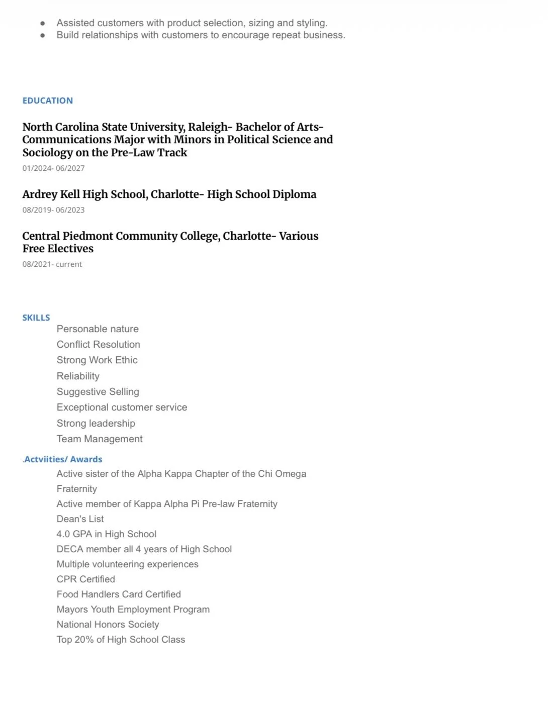 Experience/Skills